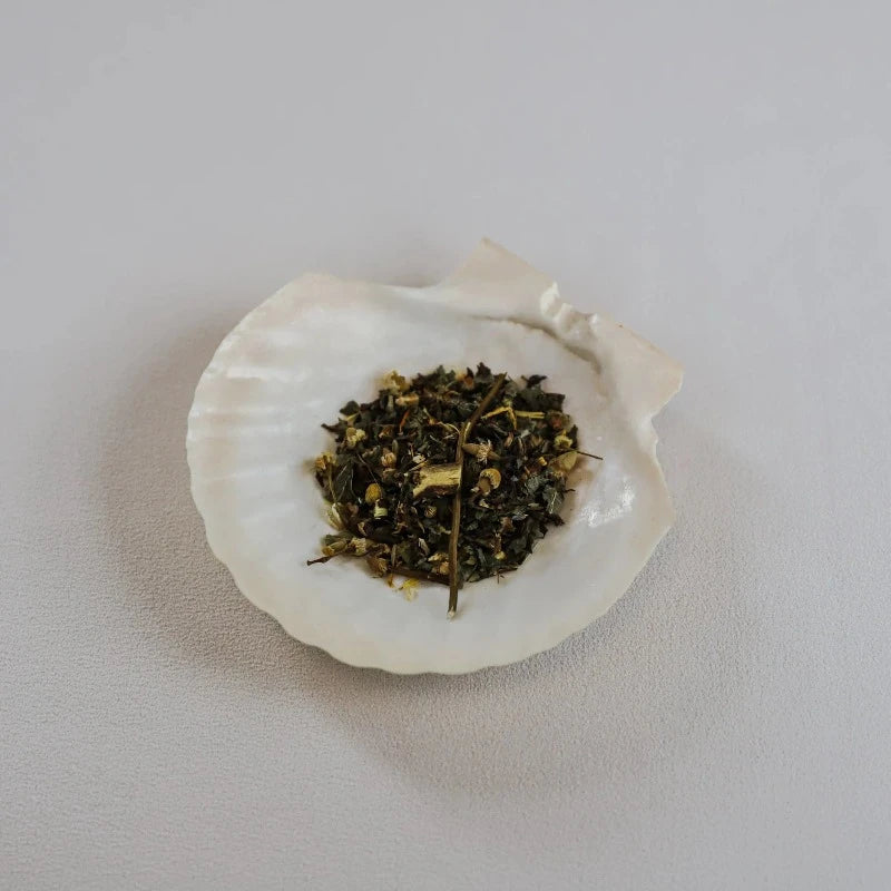 Den indeholder blandt andet rooibos, kamille, lavendel og citronmelisse, som virker beroligende og afslappende på kroppen.